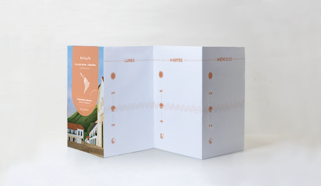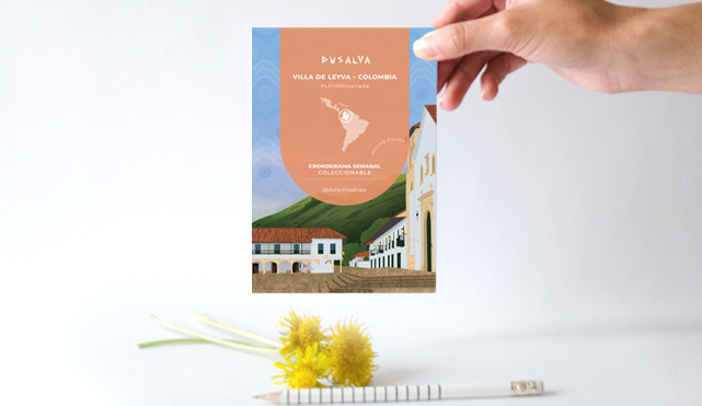 El cronograma lo diseñé con formas de la cultura Muisca que se encuentran en la ilustración y al desplegar la encuentras en formato póster.