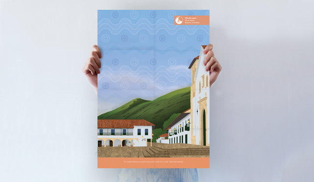 Ilustración inspirada en el paisaje de la Plaza Mayor, ubicada en Villa de Leyva, Colombia.